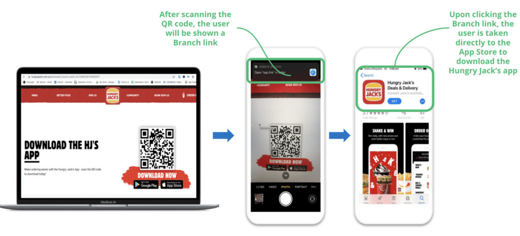 Hungry Jack’s used QR codes to drive desktop users to the app — previously, the Google Play and App Store button led users to a dead end. After being live for only one week, they drove $1000 in in-app revenue!