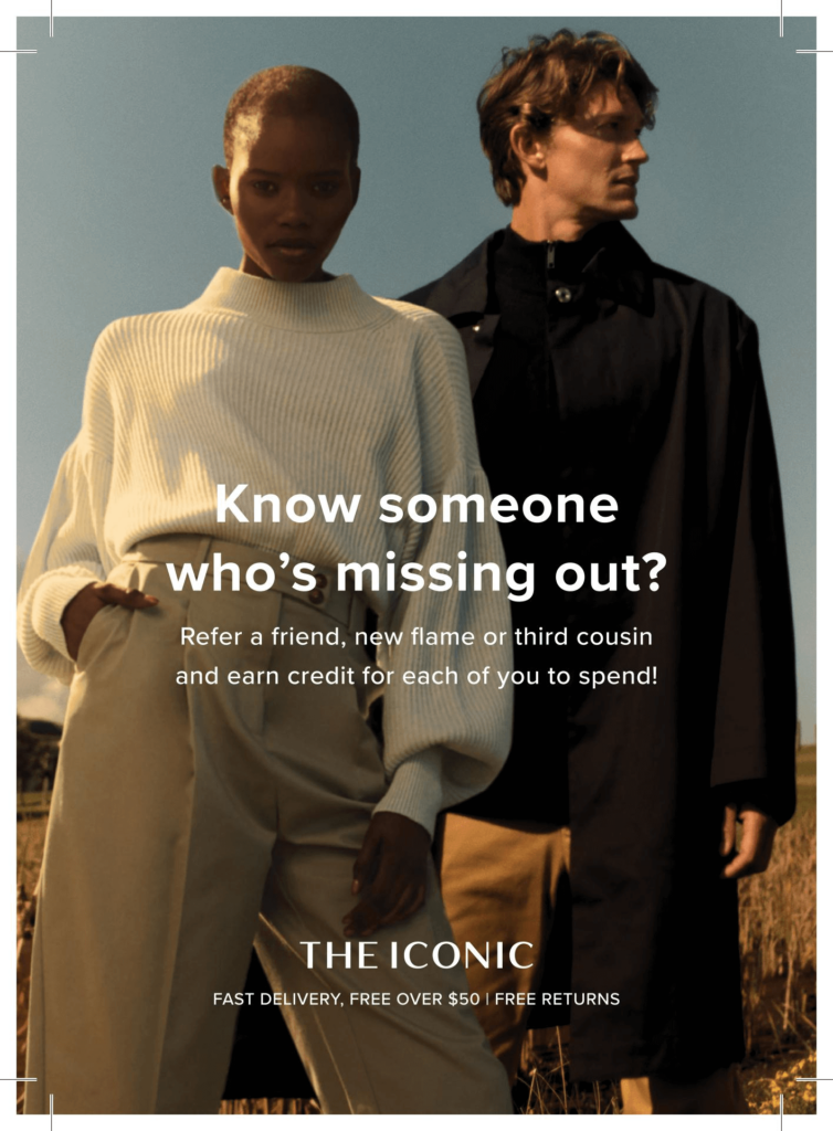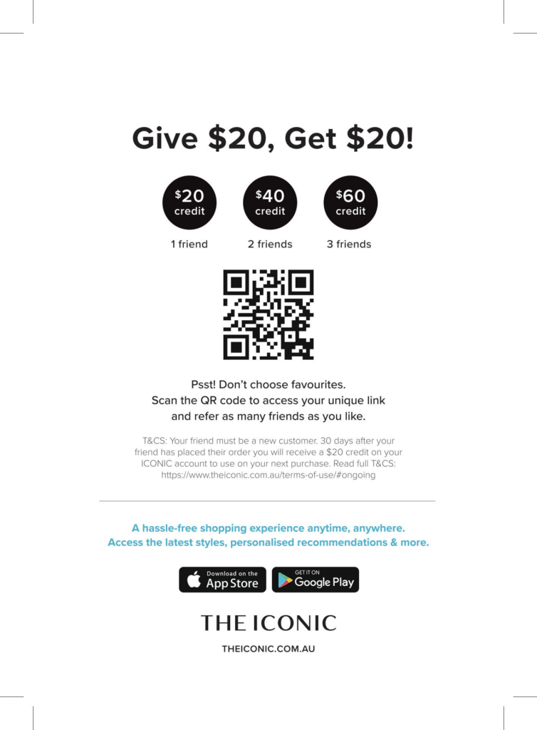 The Iconic integrated QR codes into this referral campaign. No promo codes needed, users who scanned the QR code automatically had it applied.