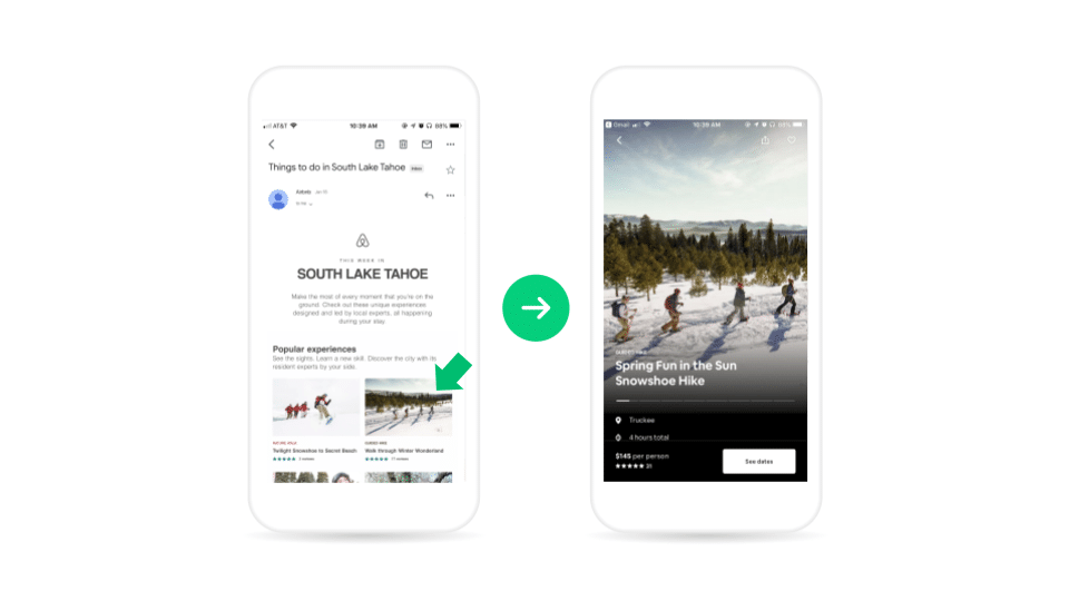 Here is an example of a deep linked email which routes the user directly to the correct in-app content upon click: