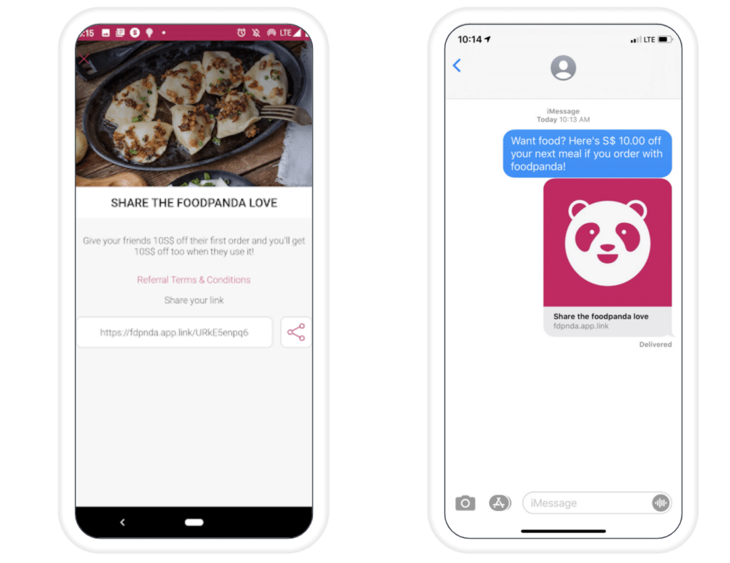 Food delivery app Foodpanda incentivizes users to refer friends into the app by offering them a $10 credit when their friends use the $10 credit that comes with the referral.