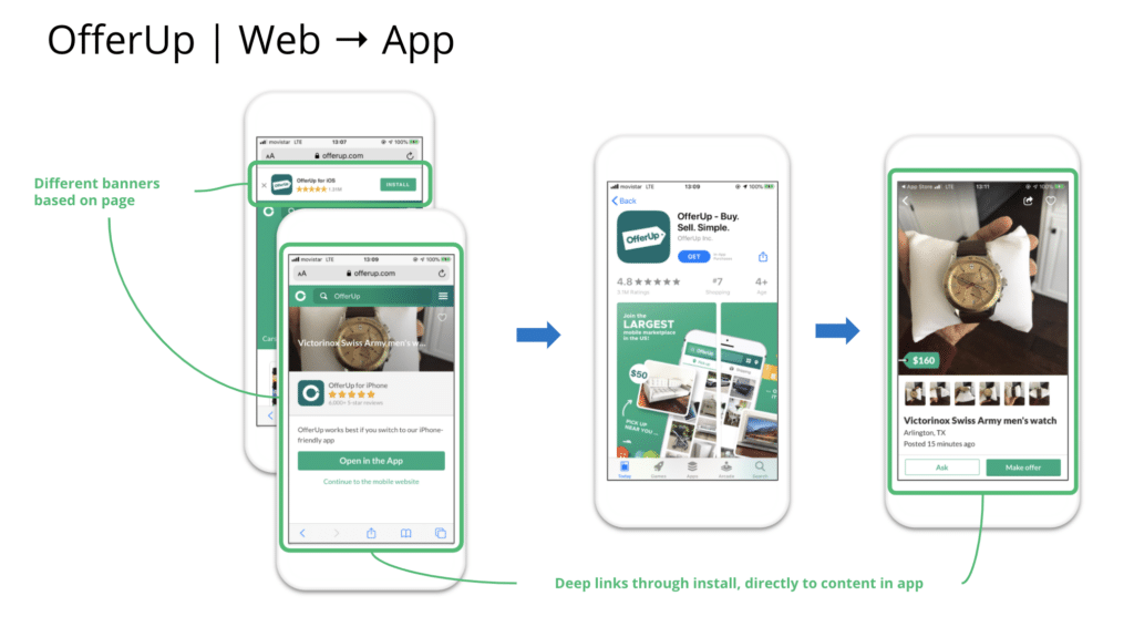 Often, the best solution is right in front of you. Convert your existing users into loyal app users by presenting opportunities on all your platforms for users to get into your app: on your mobile and desktop website, from email, and on social media, where it’s tough to get users out of the grasp of giants like Twitter and Instagram. Using your existing channels is cheaper than paying for app install campaigns, and gives users who do have your app an easy pathway back to it. Make sure these channels deep link directly to your app for a stellar user experience and to increase chances of install or conversion. Here are some examples:
