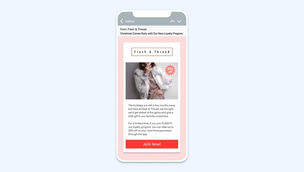 An example of a deferred deep link in a Flash & Thread email campaign. The “Join Now” CTA button brings users to the right destination based on each user’s situation.