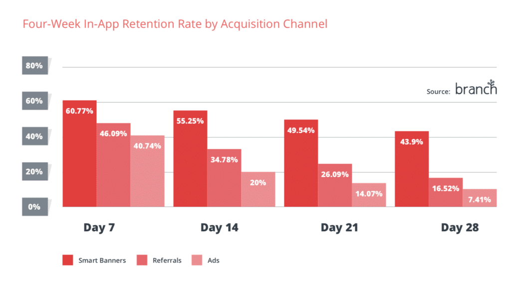 - Organic channels like the mobile web and referrals show an average retention 6X and 2.5X better than purely paid acquisition channels.