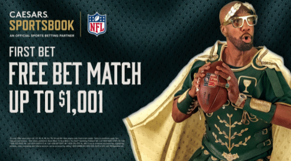 In the example below, Caesar’s Sportsbook features a celebrity referrer promoting a $1,001 match bonus when a referee signs up in the app.