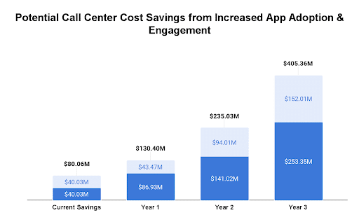 Companies that adopt a mobile-first approach see major savings by minimizing call center volume, eliminating paper mailings, and reducing agent intervention — especially in high-cost scenarios like account management, identity verification, and application processing.