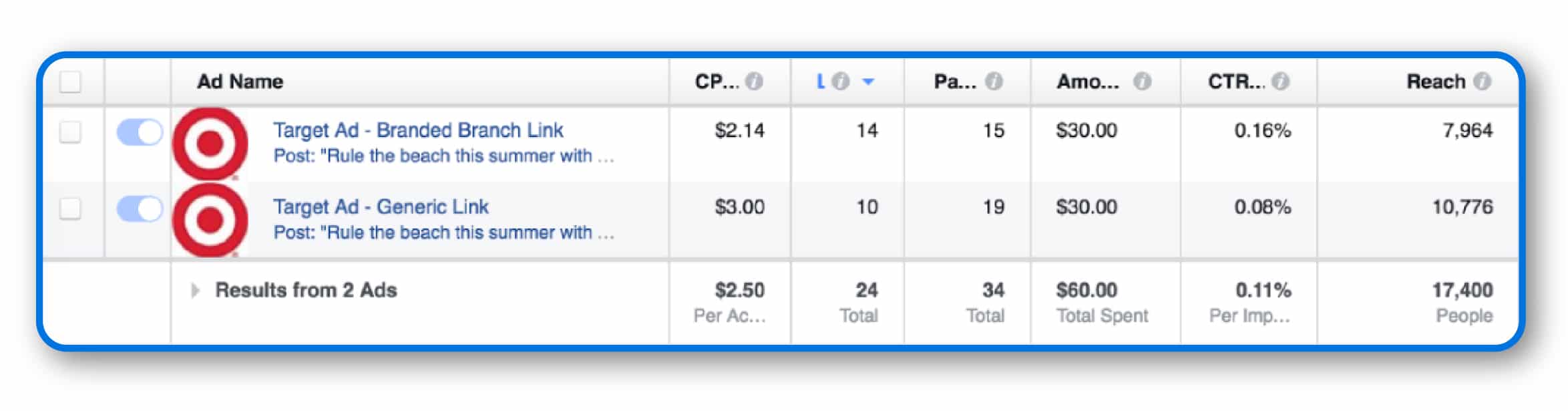 Branch put branded links to the test with a simple experiment. We ran two identical Facebook ads — same audience, same budget, same content. The only difference? One ad used a generic link, while the other featured a branded short link. When the ad included a preview image, both links performed similarly. But when we removed the preview image, the ad with the branded link saw double the CTR.