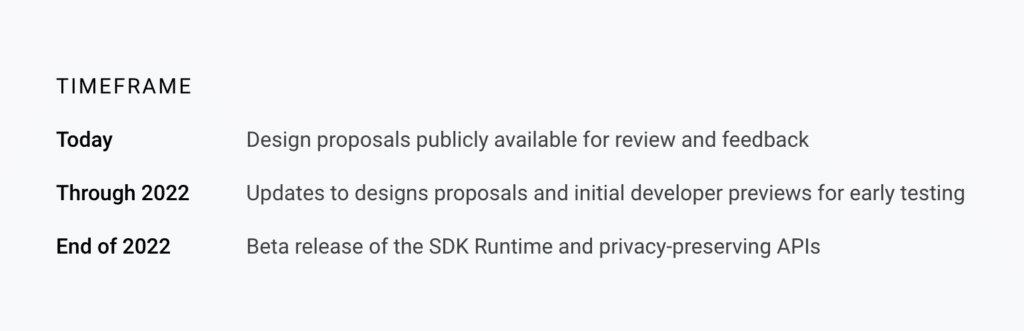 Google is eager to note that none of these changes are coming imminently: the current techniques (including GAID access) won’t change for at least the next two years, and beta releases of the new technologies aren’t expected until late in 2022. There’s no need for immediate concern, and we’ll all have plenty of time to prepare.