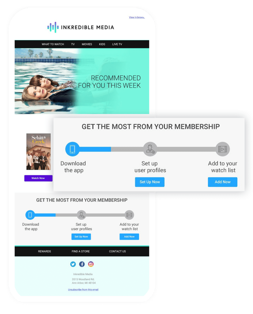 For example, if a new show catches a customer’s eye in the latest branded email, clicking on the link won’t just take them to the app; it will redirect them directly to the mobile show page itself where they’re able to stream an episode.