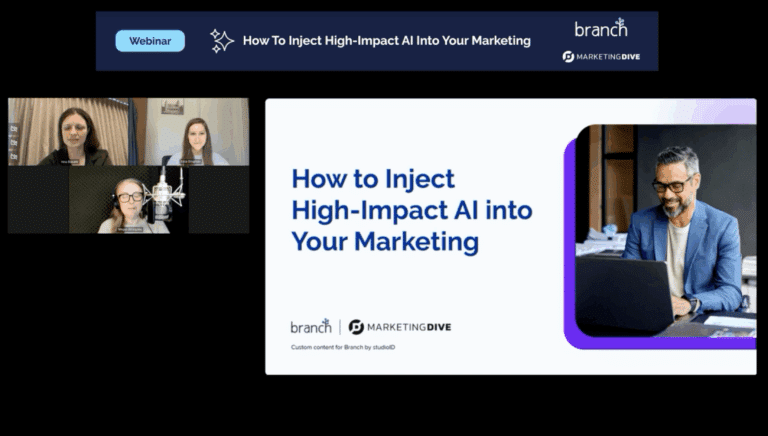 To help digital marketers, product managers, and cross-functional teams with that mission, this webinar by Marketing Dive, in partnership with Branch, supplies practical guidance for crafting a well-designed AI strategy. Along with considering the AI-driven changes in the industry, the webinar delves into why AI usability and user experience are critical for supporting adoption and scale.